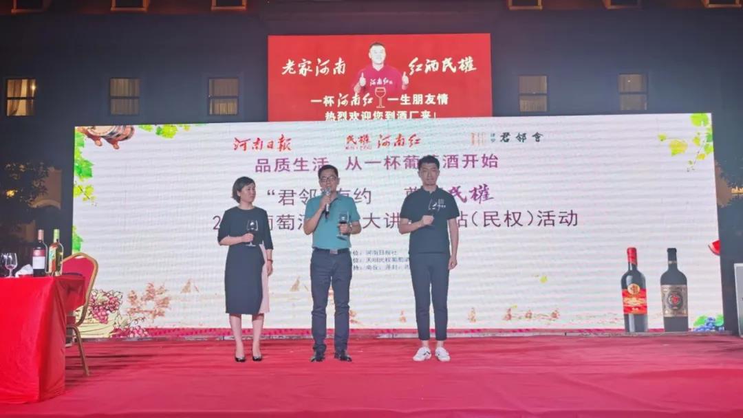 马丹代表承办方致辞,她说:民权葡萄酒是新中国成立后建立的第一家葡萄酒厂,也是省政府豫酒转型发展战略背景下,唯一进入政府重点支持骨干企业名单的葡萄酒企业,“品质生活,从一杯葡萄酒开始”, 希望我们的天明民权葡萄酒能给大家的生活增添一抹靓丽的色彩,我们经常说的一句话叫“一杯河南红,一生朋友情”,祝福所有到场的朋友,今后的生活都能像这杯葡萄酒一样红红火火。