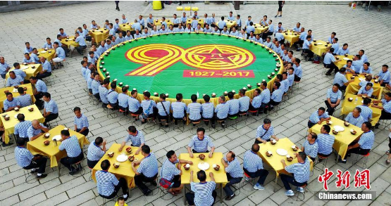 同吃一锅团圆饭追忆峥嵘岁月庆祝“八一”建军节的到来。