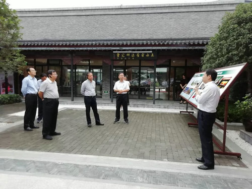 与会领导在修武县云台山镇古洞窑村云武堂听取七贤镇旅游扶贫培训工作情况介绍