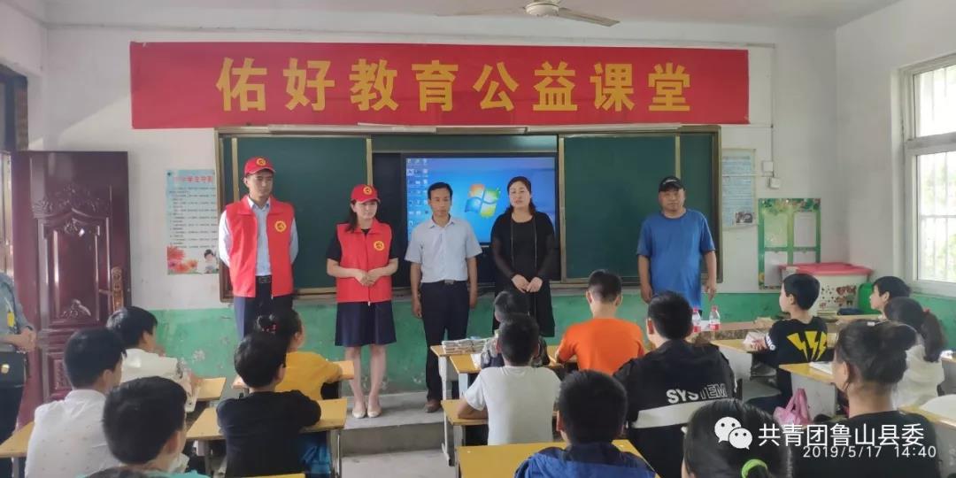 为迎接六一儿童节的到来,2019年5月17日共青团鲁山县委携手佑好教育走进豫邮希望小学开展未成年人防溺水安全知识普及和写好中国字、做好中国人、圆好中国梦爱心课堂公益活动。共青团鲁山县委副书记陈䶮仙同志、辛集乡东肖楼村驻村第一书记贺庆伟同志、豫邮希望小学校长张红晓同志、佑好教育教师张玉珂老师、张森恒老师参加活动。