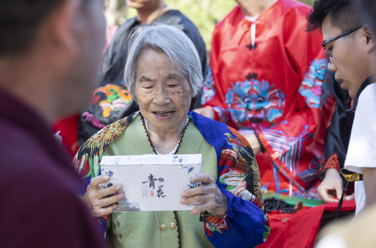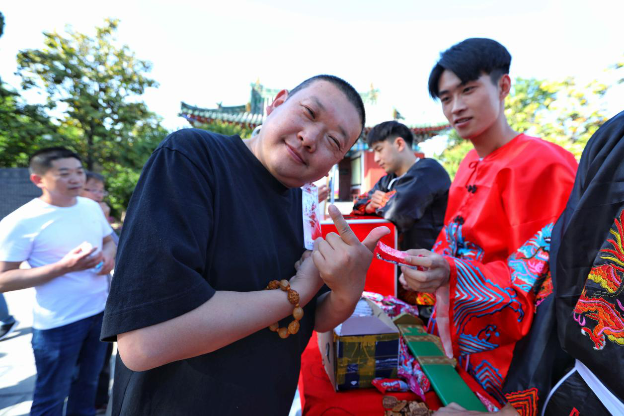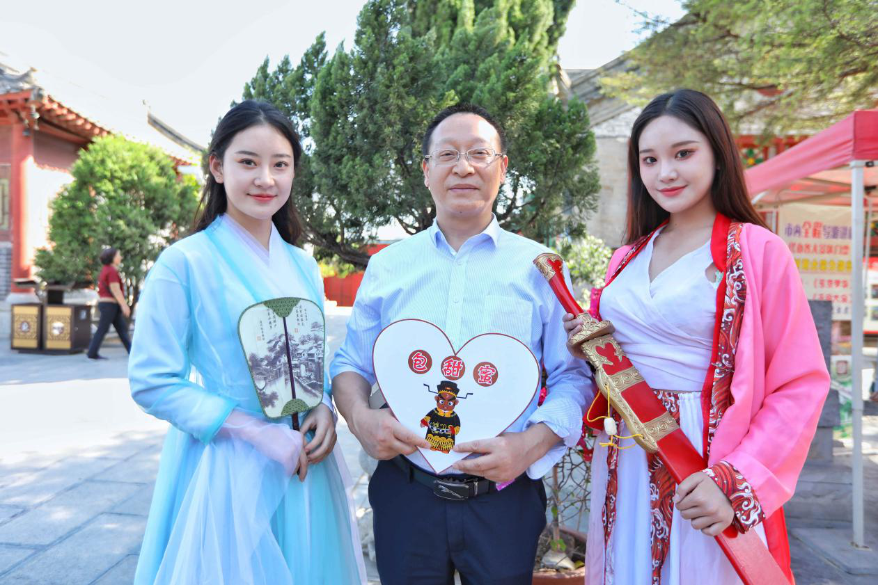 游客从“包大人”手中抽取幸运数字,领取相应礼品