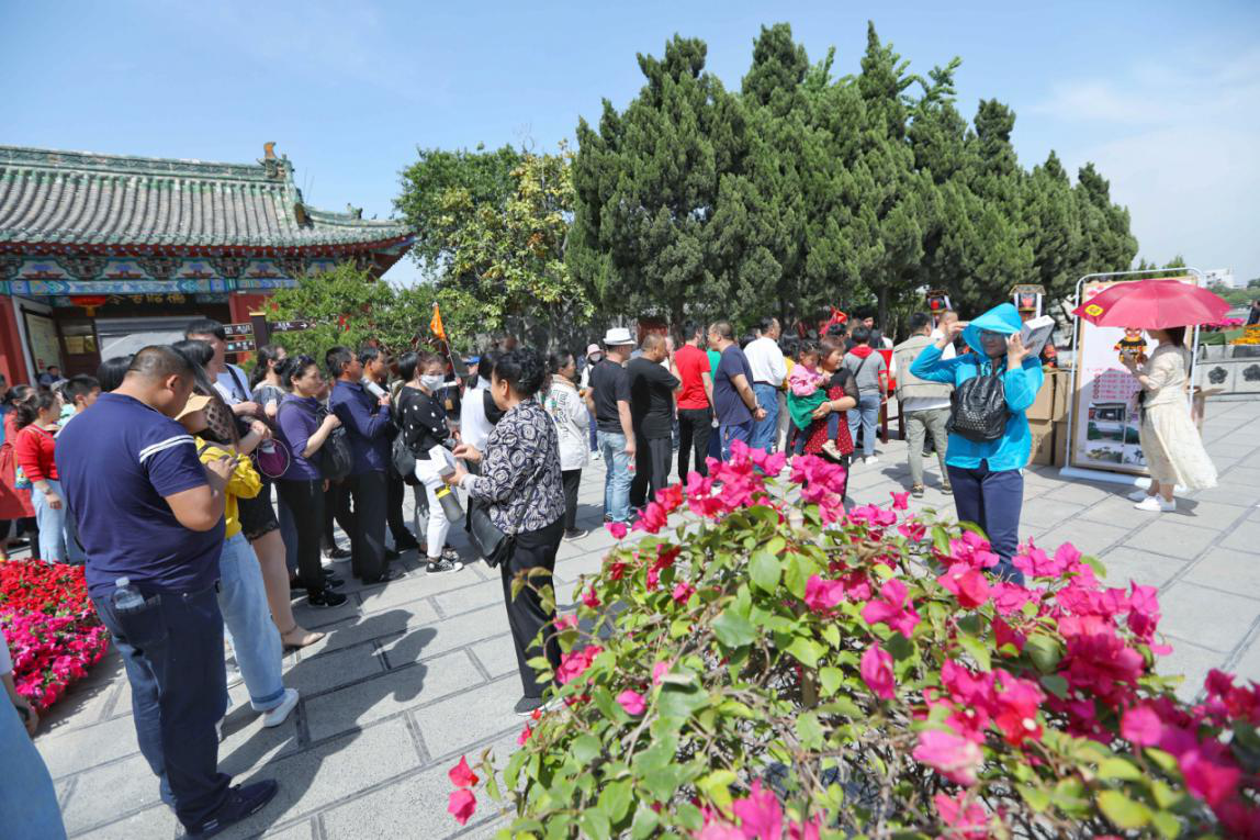 游客排队抽取吉祥礼品