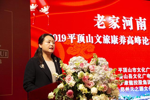顶山市文化广电和旅游局副局长高亚发表讲话。高局长说,平顶山是河南省温泉资源最丰富的地区,鲁山温泉群以水质好、涌量大、水温高、富含多种微量元素而名闻遐迩,温泉链绵延百里,历史上有“鲁阳神泉”和“皇女汤”之称,温泉水平均温度为61-63度,水中含有硼、锂、氟、镭、氡等十多种微量元素,且具有“出水量大、水质优秀、温度适宜”等优点,是具有极高品质的高温温泉。尧山温泉旅游度假区也是国家首批、河南唯一的温泉旅游度假区,温泉旅游已成为平顶山旅游的靓丽名片。